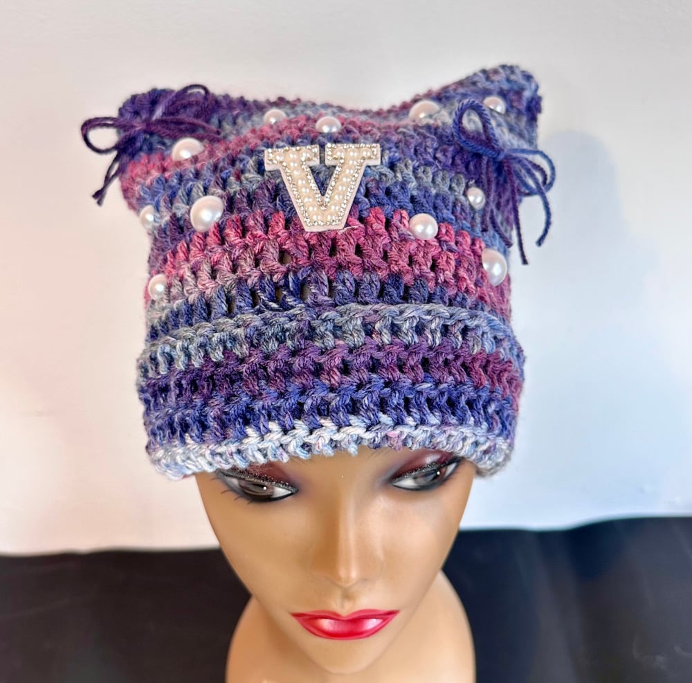 This cat ear beanie fits most head sizes. You can customize the hat by choosing a bling letter of your choosing.