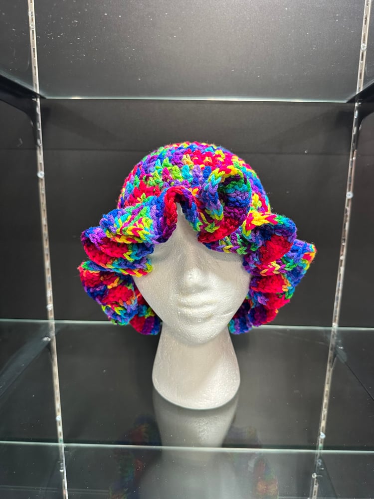 crochet bucket hat with wavy brim G