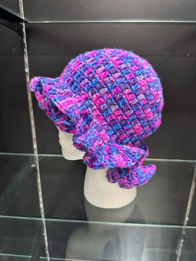 crochet bucket hat with wavy brim D